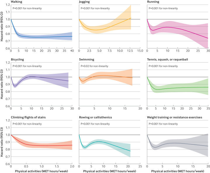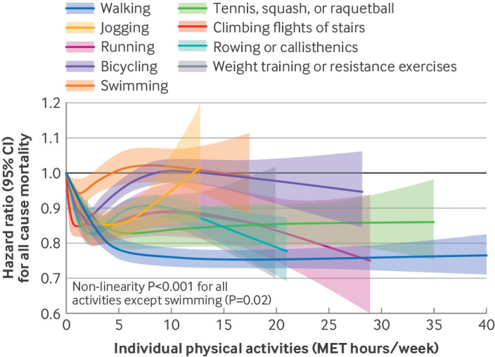 → La plupart des activités étudiées étaient associées à une baisse du risque de mortalité, avec des relations non-linéaires